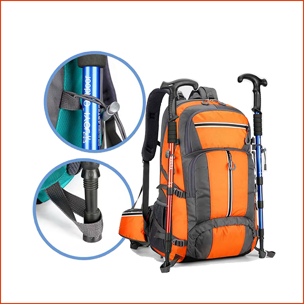 登山杖:兩側外置織帶設計,可用於固定登山杖。