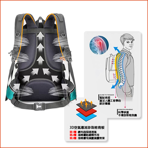 透氣背包-舒適、透氣、攜帶方便空氣導流背包系統可以引導空氣、透氣、排汗。