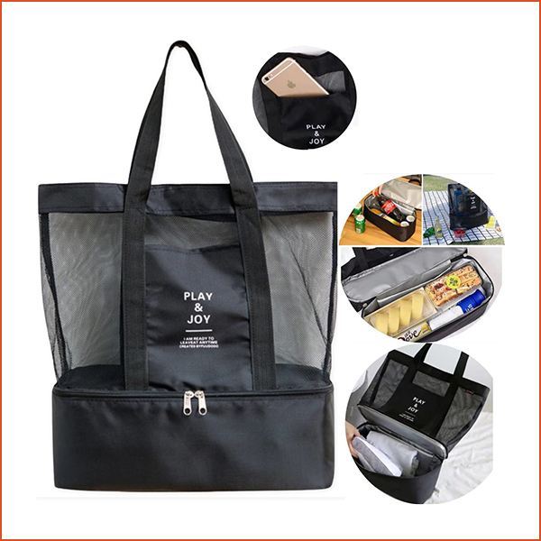 黑色大號沙灘手提包女士防水防沙單肩泳池包 |游泳|沙灘|乾濕分離包|野餐|冷熱分開|健身房|運動|旅行|大號手提包